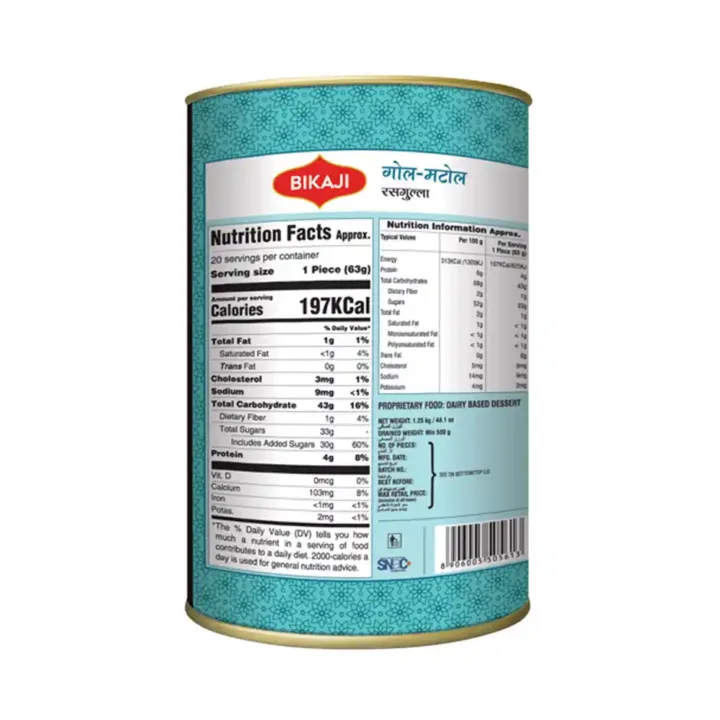 Energy 313 Kcal, Protein 6 g, Total Carbohydrates 68 g, Dietary Fiber 2 g, Sugars 52 g, Total Fat 2 g, Saturated Fat 1 g, Monounsaturated Fat <1 g Polyunsaturated Fat <1 g, Trans Fat 0 g Cholesterol 5 mg Sodium 14 mg Potassium 4 mg