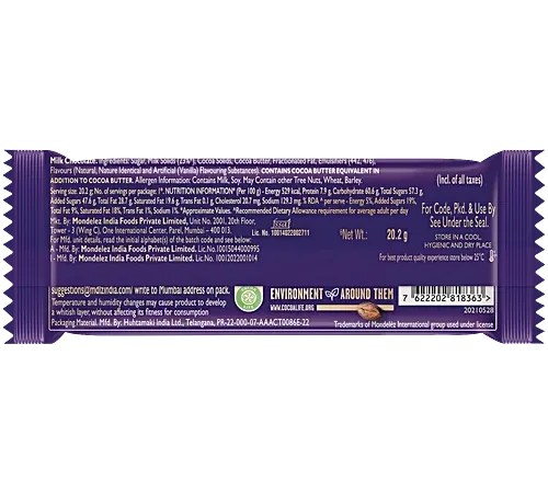 Kuch achha ho jaaye, kuch meetha ho jaaye with Cadbury Dairy Milk. Generously made with a glass and a half of milk, offering a mouthful of goodness in every piece. Cadbury Dairy Milk is the perfect meetha for sharing everyday moments of joy with your loved ones. This milk chocolate bar pack is perfect for snacking & storing in the fridge, or as a chocolate gift pack for gifting on special occasions like birthdays and get-togethers. Every chocolate bar of Cadbury Dairy Milk is made from sustainably sourced cocoa. It is suitable for vegetarians.
