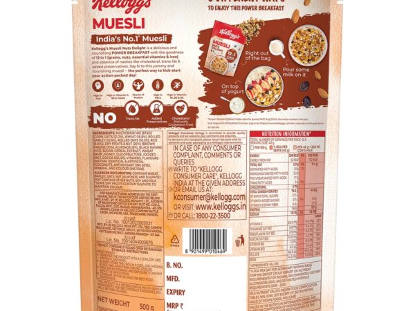 - India’s No.1* Muesli: Kellogg’s Muesli is India’s No. 1 Muesli brand (*refer pack/website for details)